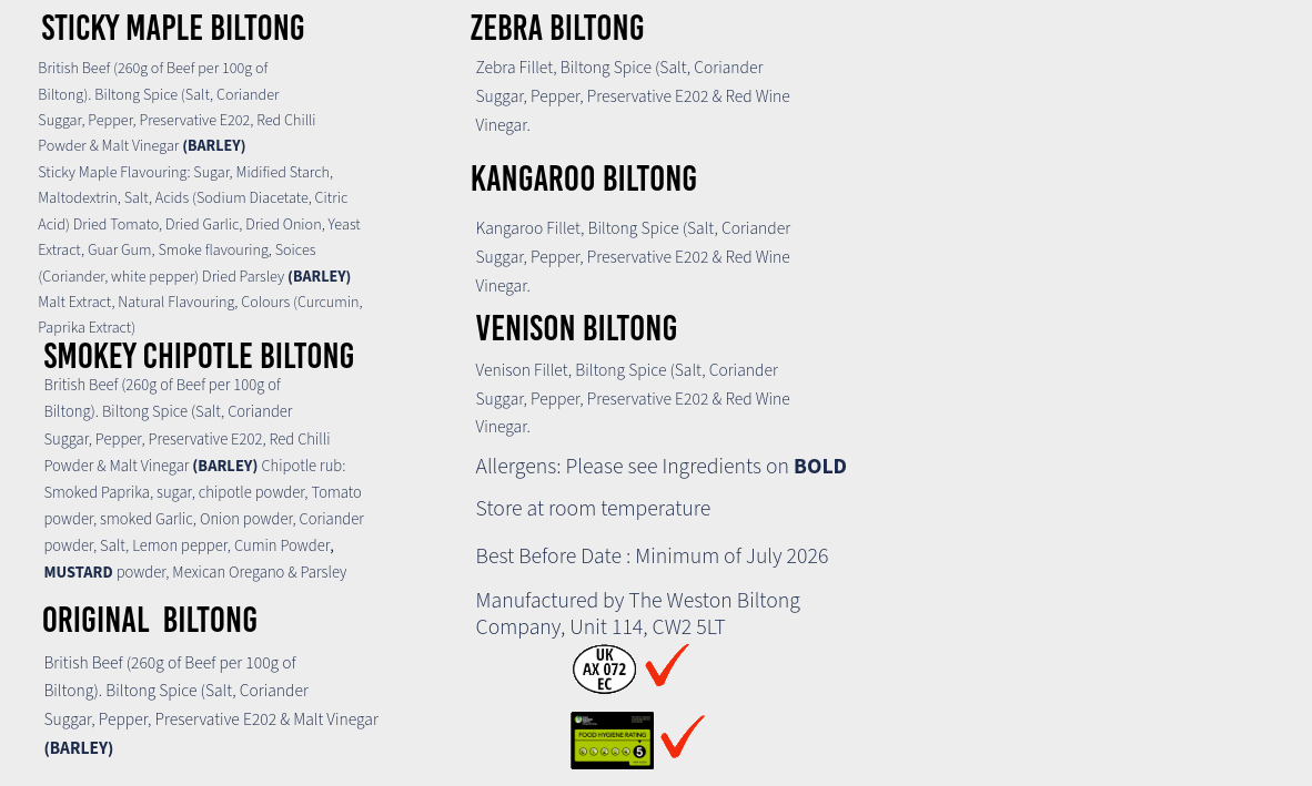 - Venison Biltong (35g) – Deep, earthy flavours from premium British deer